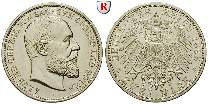 Alfred 1893-1900. 2 Mark 1895 A. J. 145; extremely fine, cleaned