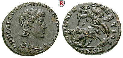 Zur Münzgeschichte: Auf allen Münzen erscheint nur der angenommene Name CONSTANTIUS. Die Ausprägung seiner Münzen erfolgte in den gleichen Münzstätten, die auch für den Kaiser prägten. Die Tatsache, dass es sich dabei ebenfalls um Goldnominale handelte, macht deutlich, dass Constantius II. wirklich die Absicht gehegt hatte, seinem jungen Vetter alle Chancen auf die Nachfolge einzuräumen. Geprägt wurde in folgenden Münzstätten: Arelate, Lugdunum, Ambianum, Trier, Aquileia, Rom, Siscia, Sirmium, Thessalonica, Heraclea, Constantinopel, Nicomedia, Cyzicus, Antiochia, Alexandria.