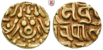 Kumarapala 1145-1171. Stater 1145-1171. Lakshmi seated facing / Brahmi-inscription in three lines. Mitch. 441-443; GOLD, good very fine