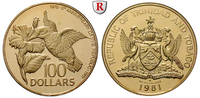 100 Dollars 3,11 g fein, 1981. Goldkehlkolibri. Friedb. 2; GOLD, Polierte Platte