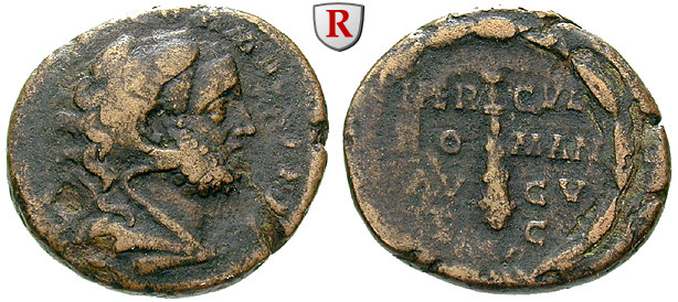 Zur Münzgeschichte: Die Münzprägung des Commodus unterteilt sich in drei signifikante Abschnitte. 175 bis 177 prägte er als Caesar. Die Münzen zeigen ein jugendliches Portrait, der Kopf trägt meistens keinen Lorbeerkranz. 177 bis 180 prägte Commodus als Augustus und Mitregent des Marcus Aurelius. Das Portrait zeigt noch immer recht jugendliche Züge, der Kopf ist allerdings meistens bekränzt. Die Titulatur ist L(ucius) AVREL(ius) COMMODVS. In den ersten Jahren seiner Alleinherrschaft ab 180 nennt er sich M(arcus) COMMODVS ANT(oninus) AUGVSTVS und verweist damit auf seinen Vater Marcus Aurelius und dessen Vorgänger Antoninus Pius. Ein fundamentaler Wechsel in der Titulatur findet 191 statt. Der Herrscher nennt sich nun L(ucius) AEL(ius) AVR(elius) COMMODVS und legt die beiden Namensteile, die sich auf seine Vorgänger beziehen, ab.