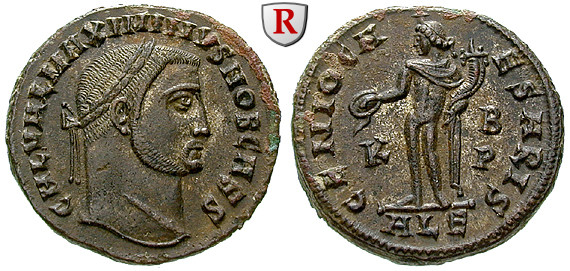 Zur Münzgeschichte: Während der Regierungszeit des Maximinus Daia war der Follis die wichtigste Münze. Diese ursprünglich 10 g schwere, leicht silberhaltige Bronzemünze verfiel im Gewicht immer mehr und war zum Ende der Herrschaft nur noch ca. 4 g schwer. Follis des Maximinus gibt es daher in unterschiedlichen Größen und Gewichten. In Edelmetall wurden der silberne Argenteus und der goldene Aureus ausgeprägt. Diese Nominale mit dem Portrait des Maximinus Daia sind überaus selten und zählen zu den gesuchten Raritäten der römischen Numismatik.