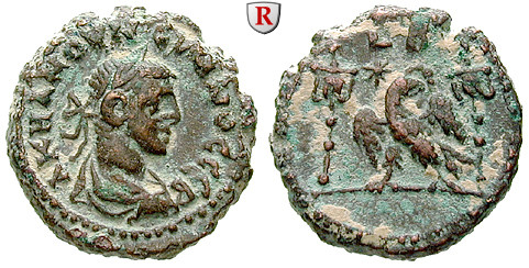 Numerianus 283-284. Billon-Tetradrachme 20 mm Jahr 2 = 283-284 Alexandria. Drapierte und gepanzerte Büste r. mit Lorbeerkranz / Adler l. mit Lorbeerkranz zwischen zwei Stantarten. Dattari 5616; sehr schön +