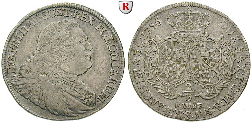 Friedrich August II. 1733-1763. 2/3 Taler 1756 Dresden, FWoF. Dav. 831; sehr schön +