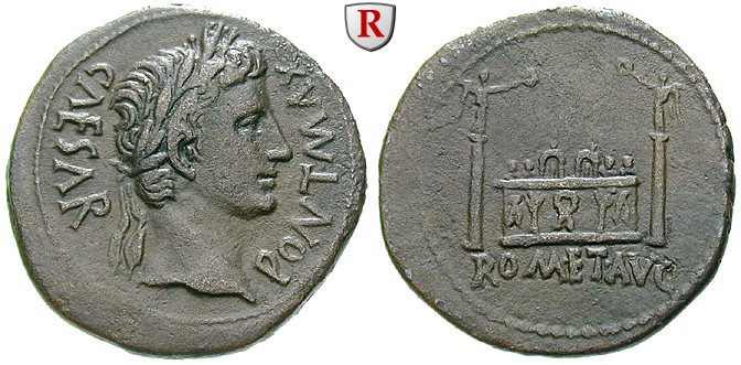 Zur Münzgeschichte: Geprägt wurde neben dem Denar und dem Aureus als Bronzemünzen das As und sein Doppelstück, der Dupondius, daneben der Sesterz, der im Gegensatz zur Republik 4 Asse wert war und nicht 2 1/2, wie eigentlich sein Wortstamm besagt.