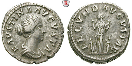 Ein Jahr später, 146, wurde sie aus Anlass der Geburt ihres ersten Kindes zur Augusta erhoben, sodass sie dem Titel nach ihren Gatten überragte. Ihre Ehe brachte - auch auf Münzen gefeiert - dem römischen Staat nach längeren Zeiten wieder einmal viele Nachfolger (13 Prinzen und Prinzessinnen). Diese jugendliche Augusta war darüber hinaus schön, elegant, gebildet und dadurch außerordentlich vom Glück begünstigt. Es erstaunt nicht, wenn sie beneidet wurde und wenn üble Nachreden auftauchten. Von einem Zerwürfnis zwischen den Eheleuten aber schweigen die Quellen. Im Gegenteil, wir hören, dass sie ihren Gemahl ins Feldlager begleitete und als erste Kaiserin den Ehrentitel MATER CASTRORUM führte.