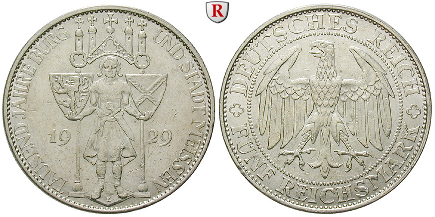 5 Reichsmark 1929 E. Meißen. J. 339; sehr schön +