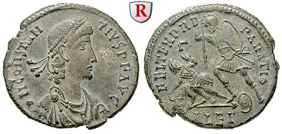 Constantius II 337-361. Bronze 23 mm 351-355 Alexandria. Diademed, draped and cuirassed bust right DN CONSTANTIVS NOB CAES / FEL TEMP REPARATIO Emperor spearing fallen horseman; mintmark G/ALEG. RIC 72; extremely fine