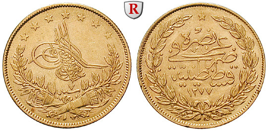 Abdul Aziz 1861-1876. 100 Piaster 6.61 g fine, 1866. Year 7. Schl. 386; GOLD, good very fine