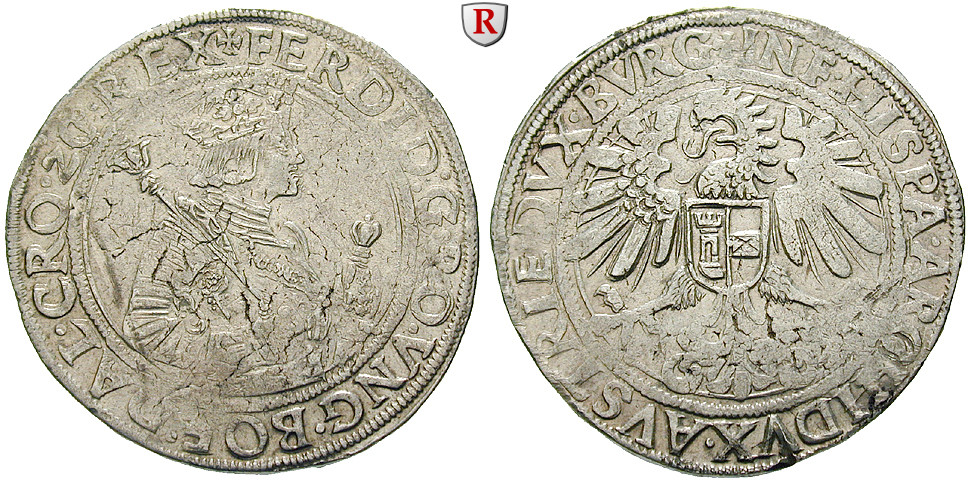 Ferdinand I. 1521-1564. Taler o.J. Hall. Hüftbild r. mit Zepter und Schwert / Wappen auf Reichsadler. Dav. 8026; sehr schön +