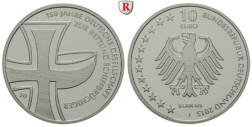 10 Euro 2015 J. 150 Jahre Deutsche Gesellschaft zur Rettung Schiffbrüchiger. Polierte Platte