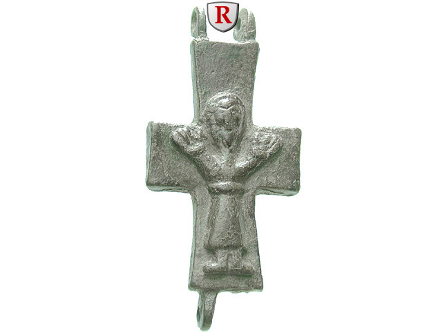 Enkolpion 8./12. Jh. Einfaches einteiliges bronzenes Kreuz mit Christusmotiv. Länge: ca. 4 cm.