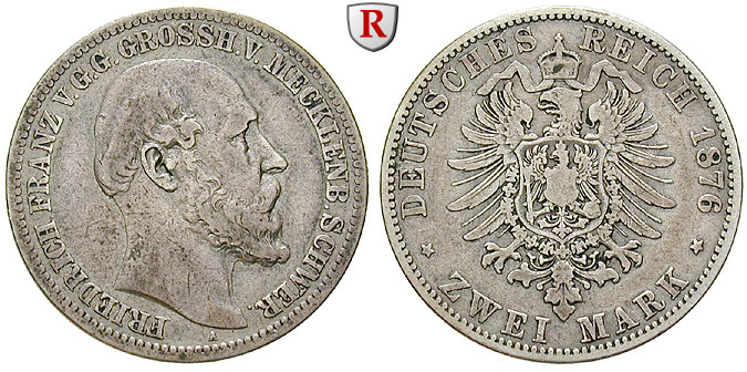 Friedrich Franz II. 1842-1883. 2 Mark 1876 A. J. 84; very fine
