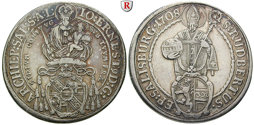 Johann Ernst von Thun und Hohenstein 1687-1709. Reichstaler 1708. Dav. 1234; sehr schön, Felder geglättet