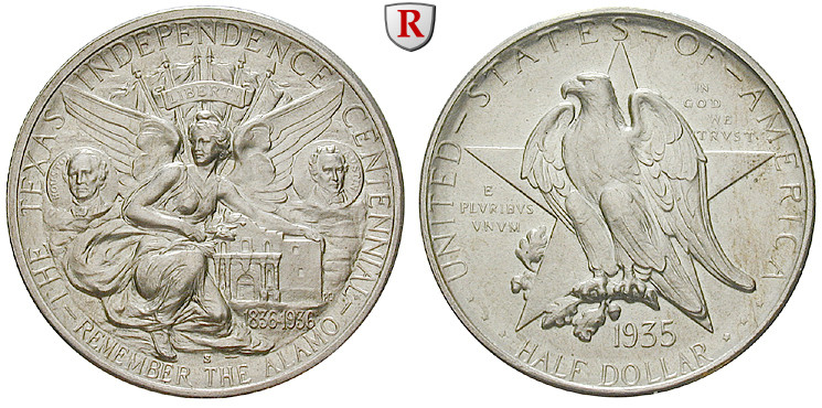 1/2 Dollar 1935 S. Texas Centennial. Schön 170; vorzüglich +
