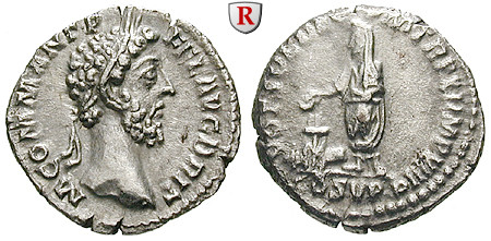 Zur Münzgeschichte: Die Münzprägung des Commodus unterteilt sich in drei signifikante Abschnitte. 175 bis 177 prägte er als Caesar. Die Münzen zeigen ein jugendliches Portrait, der Kopf trägt meistens keinen Lorbeerkranz. 177 bis 180 prägte Commodus als Augustus und Mitregent des Marcus Aurelius. Das Portrait zeigt noch immer recht jugendliche Züge, der Kopf ist allerdings meistens bekränzt. Die Titulatur ist L(ucius) AVREL(ius) COMMODVS. In den ersten Jahren seiner Alleinherrschaft ab 180 nennt er sich M(arcus) COMMODVS ANT(oninus) AUGVSTVS und verweist damit auf seinen Vater Marcus Aurelius und dessen Vorgänger Antoninus Pius. Ein fundamentaler Wechsel in der Titulatur findet 191 statt. Der Herrscher nennt sich nun L(ucius) AEL(ius) AVR(elius) COMMODVS und legt die beiden Namensteile, die sich auf seine Vorgänger beziehen, ab.