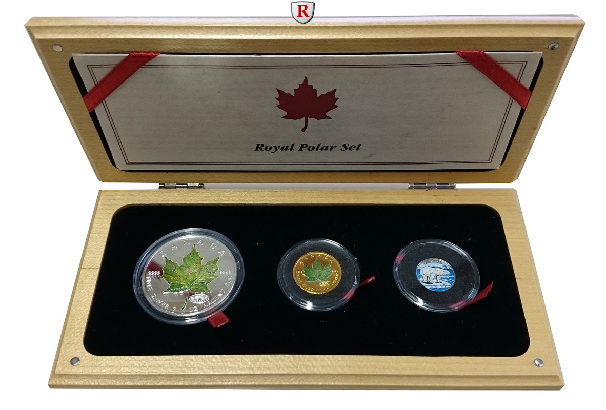 10 Dollars (1/4 Oz .999 gold); 5 Dollars (1/10 Oz .999 platinum); 5 Dollars (1 Oz .999 silver). mint state