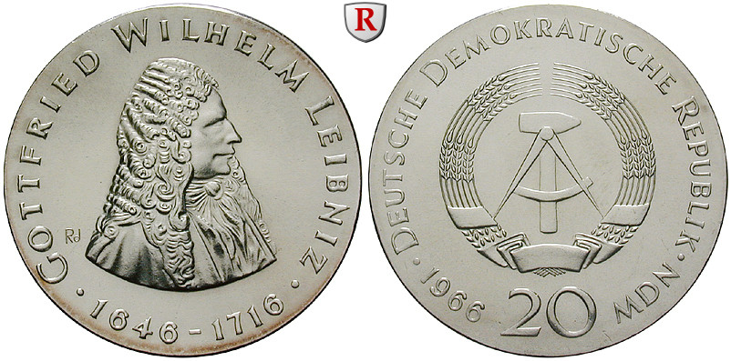 20 Mark 1966. Leibniz. J. 1518; vorzüglich, Abbildung Münztyp