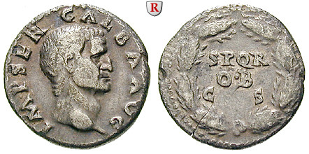 Zur Münzgeschichte: Die ersten Münzen für Galba wurden in Spanien und Gallien geschlagen. Münzstätten waren Tarragona, Narbonne, Vienne und Lyon. In Rom begann die Prägung erst nach der Anerkennung durch den Senat im Juni 68. Die Typenauswahl reflektiert den Anspruch Galbas auf eine Erneuerung des Staatswesens, so SALVS GENERIS HVMANI (Das Heil der Menschheit) oder ROMA RENASCENS (Rom wiedergeboren). Die schönsten Münzen Galbas sind seine Sesterzen. Hervorragende Stempelschneider haben das beeindruckende Altersportrait eines Mannes geschaffen, dessen ernste und strenge Gesichtszüge seinen Charakter widerspiegeln.