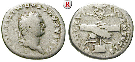 Zur Münzgeschichte: Unter Domitianus wurden beträchtliche Mengen von Münzen geprägt. Die Rückseiten wurden verstärkt propagandistisch eingesetzt, und durch die Vielzahl von Titeln ergibt sich eine entsprechende Variantenfülle. Domitianus ließ hauptsächlich in Rom, Lugdunum und Ephesus prägen.