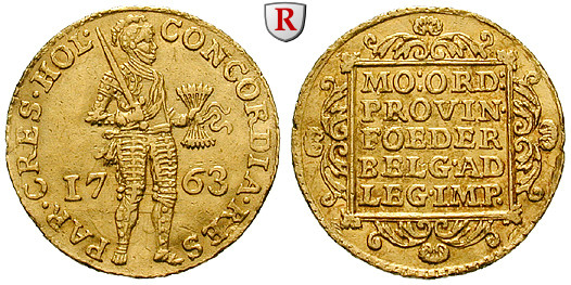 Dukat 3,47 g fein, 1763. Stehender Ritter. Friedb. 250; GOLD, sehr schön - vorzüglich
