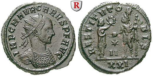 Zur Münzgeschichte: Während der Regierungszeit des Carus wurden in recht großen Mengen Antoniniane geprägt. Sie bestanden aus Bronze mit einer geringen Beimengung von Silber, um den Schein der Silbermünze aufrechtzuerhalten. Goldene Aurei des Carus sind selten und heute hochbezahlte Raritäten.