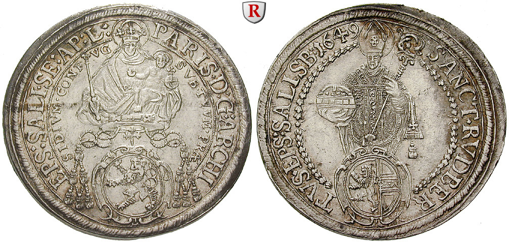 Paris von Lodron 1619-1653. Reichstaler 42 mm 1649. Dav. 3504; vorzüglich