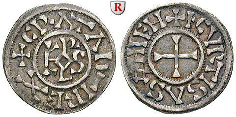 Karl der Kahle 840-877. Denar Courtisson. +CRATIAD-IREX um Karolusmonogramm / ICVRTISASONIEN+ um Kreuz. Morrison/Grunthal 895var.; sehr schön +