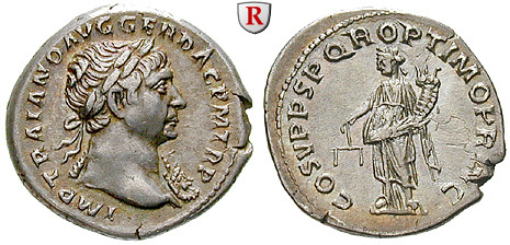 Zur Münzgeschichte: Die fast 20-jährige Regierungszeit sowie die vielen großen Feldzüge bewirkten, daß Traianus in allen Metallen (Gold, Silber, Bronze) und Nominalen (Aureus, Denar, Sesterz, Dupondius und As) umfangreiche Münzserien in Rom und Kleinasien prägte.