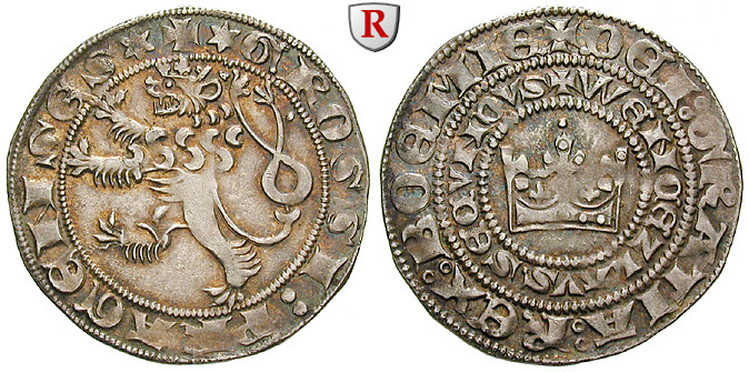 Wenzel II. 1278-1305. Prager Groschen o.J. Kuttenberg. Doneb. 807; fast vorzüglich, schöne goldene Patina