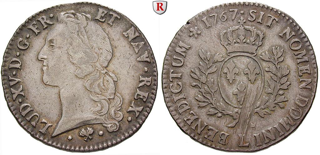 Louis XV. 1715-1774. Ecu au bandeau 1767 L Bayonne. Gad. 322; sehr schön +, Rs. justiert