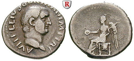 Zur Münzgeschichte: Die Münzstätte in Rom prägte erst vom 19. April an in Rom Münzen für Vitellius, an diesem Tag wurde er durch den Senat anerkannt. Das Geld, das Vitellius vorher benötigte, ließ er in Tarraco in Spanien und Lugdunum (Lyon) in Gallien prägen. Die Titulatur seiner Münzen weist einige Besonderheiten auf. Seit seiner Akklamation bezeichnete sich Vitellius als "Germanicus", diesmal nicht als Siegesname zu verstehen, sondern aufgrund seiner Erhebung in Germanien. Den Titel "Caesar" nahm er nie an und er erscheint auch nicht auf Münzen. Die Münzrückseiten betonen besonders den militärischen Aspekt der Treues des Heeres - FIDES EXERCITVVM - oder der Eintracht aller Bevölkerungsschichten - CONCORDIA. Sehr seltene Prägungen zeigen die Kinder des Herrschers - der zögerliche Versuch einer Dynastiegründung.