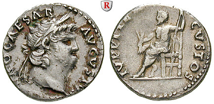 Zur Münzgeschichte: Unter Kaiser Nero erfolgte eine erste Gewichtsreduktion des Aureus (Gold) und des Denars (Silber). Eine reiche Vielfalt der Rückseitenbilder auf allen Nominalen und die jetzt klassisch zu nennende römische Portraitkunst kennzeichnen die kaiserlichen Münzen. Besonders schön sind einige der Sesterzen. Geprägt wurde vor allem in Rom, aber auch in Gallien (Lugdunum (?)) und Kleinasien (Caesarea).