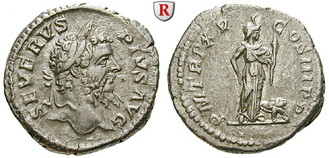 Zur Münzgeschichte: Wegen der großen Summen, die seine Feldzüge verschlangen, kam es zu einer deutlichen Münzverschlechterung. Die Denare enthalten teilweise nur noch 30-40 Prozent Silber, sind also aus Billon. Sie bilden auch das häufigste Nominal (Truppensold) und wurden in Rom, vielleicht auch in anderen Provinzen geprägt. Die Kaiserbilder auf ihnen ähneln stark denen von Pertinax, Clodius Albinus und Marc Aurel, um immer wieder auf die Nachfolge zu verweisen.