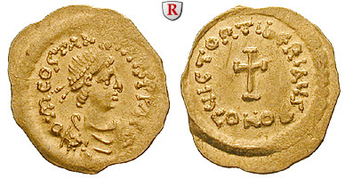 Tiberius II Constantine 578-582. Tremissis 17 mm 578-582 Constantinople. Diademed, draped and cuirassed bust r. / Cross potent on base. Sear 425; GOLD, nearly extremely fine, minor scratches on rev.