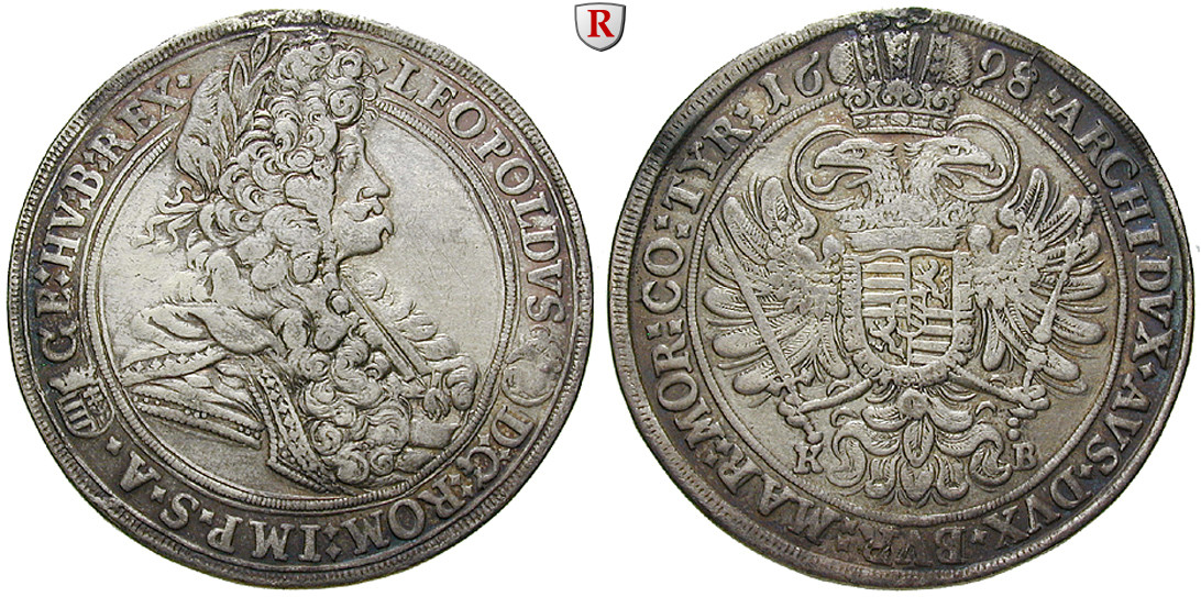 Leopold I 1657-1705. Reichstaler 1698 Kremnitz. Dav. 3264; very fine, traces of removed loop