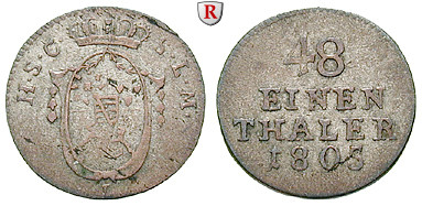 Franz 1800-1806. 1/48 Taler 1764 Saalfeld. Grasser 559; sehr schön +