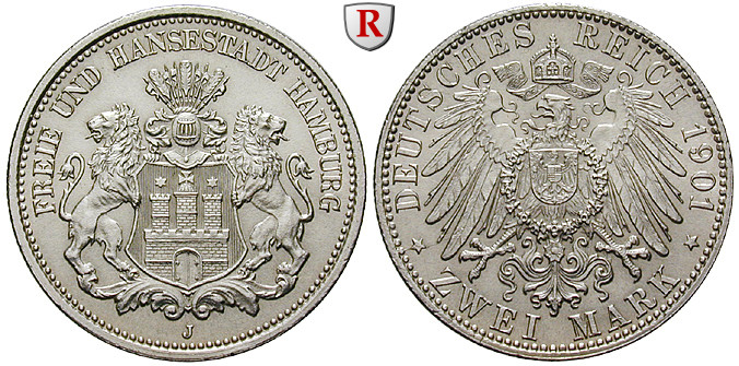 2 Mark 1901 J. J. 63; mint state