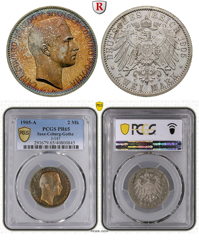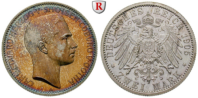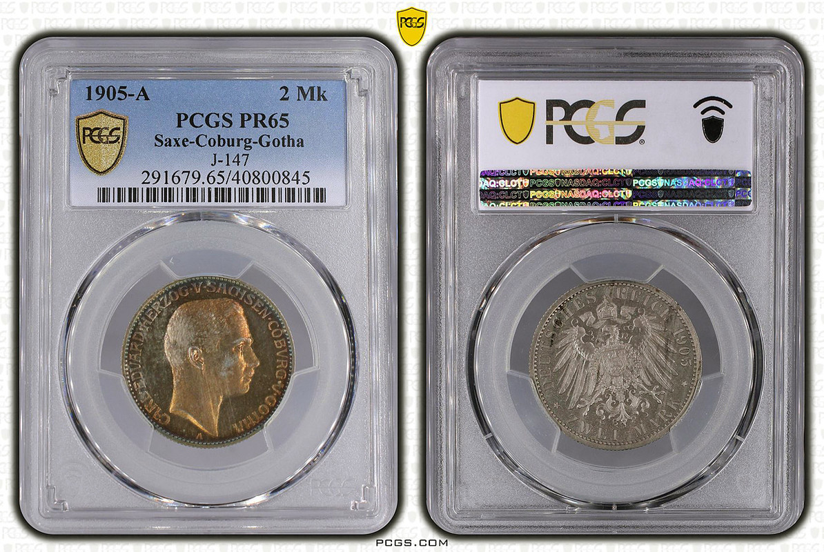 Carl Eduard 1900-1918. 2 Mark 1905 A. J. 147; Polierte Platte, PCGS PR65