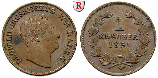 Karl Leopold Friedrich 1830-1852. Kupfer-Kreuzer 1851. AKS 107; vorzüglich