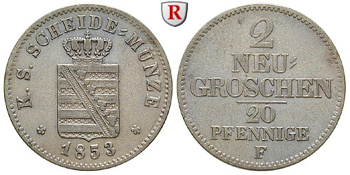 Friedrich August II. 1836-1854. Billon-2 Neugroschen 1853 F. AKS 106; sehr schön +