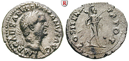 Vespasian 69-79. Denarius 18 mm 69-71 Rome. Laureate head right IMP CAESAR VESPASIANVS AVG / COS ITER TR POT Mars advancing right, holding spear and shield. RIC 7; very fine to extremely fine / very fine, fields smoothed