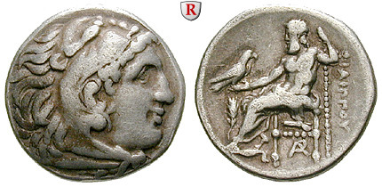 Philipp III. 323-317 v.Chr. Drachme 17 mm 323-317 v.Chr. Abydos. Kopf des Herakles r. mit Löwenfell / Thronender Zeus l., hält Adler und Zepter, Beizeichen Kornähre und Monogramm. Price P24; sehr schön
