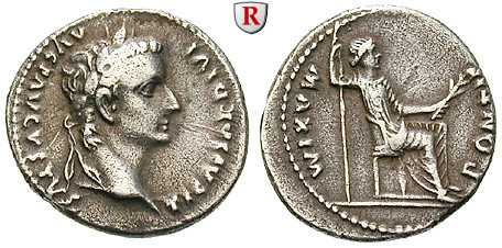 Zur Münzgeschichte: Seine Prägungen besitzen nur wenige Rückseitentypen. Am bekanntesten ist das Münzbild mit der thronenden weiblichen Gestalt mit Ölzweig, Zepter und Lanze, eine Personifikation des Friedens (PAX), und zwar in Gestalt der Livia.