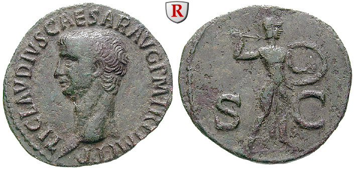 Claudius I. 41-54. Copper-As 30 mm 50-54 Rome. Head left TI CLAVDIVS CAESAR AVG P M TR P IMP P P / SC Minerva standing right, holding spear and shield. RIC 116; extremely fine / very fine to extremely fine