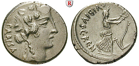 C. Vibius Pansa 48 v.Chr. Denar 19 mm 48 v.Chr. Rom. Kopf des Liber r. mit Efeukranz PANSA / C VIBIVS C F C N Ceres schreitet r. mit Fackel in jeder Hand, davor Pflug. Cr. 449/2; sehr schön-vorzüglich / vorzüglich