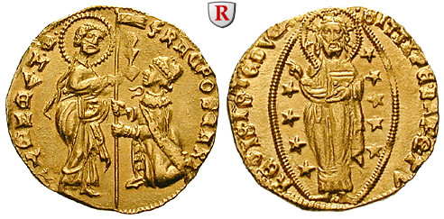 Francesco Foscari 1423-1457. Zecchino 20 mm o.J. Doge kniet vor St. Markus / Christus in Mandorla. Friedb. 1232; GOLD, vorzüglich +