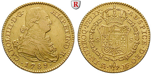 Carlos IV. 1788-1808. 2 Escudos 1789 Madrid MF. Friedb. 296; GOLD, sehr schön - vorzüglich