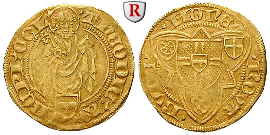 Dietrich II. von Mörs 1414-1463. Goldgulden o.J. (1423) Bonn. Saint Peter / Arms. Friedb. 794; GOLD, very fine, edge tooled