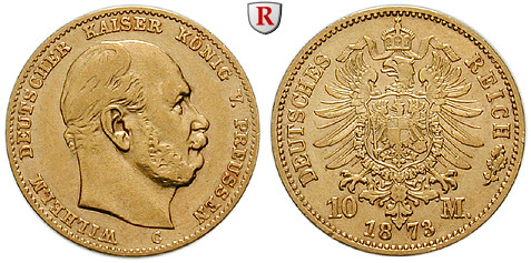 Wilhelm I. 1861-1888. 10 Mark 1873 C. J. 242; GOLD, good very fine